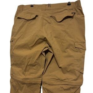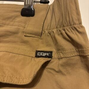 CQR Size 38 x 32 Tactical Cargo Pants. Partial elastic waist. Zip off legs. 64% cotton, 32% nylon, 4% elastane. Back of pants have some pulled stitching at pockets. Left leg has a few snags near bottom. See photos.
