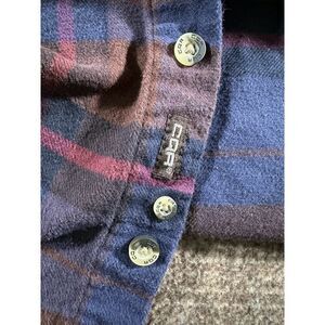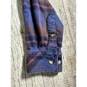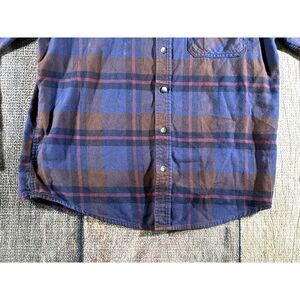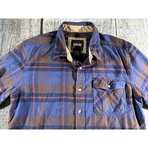 CQR Blue Brown Plaid Flannel Long Sleeve Button Up Shirt. Size large. In good condition! Button up front with a pocket on the left chest. Brown red and blue plaid pattern.