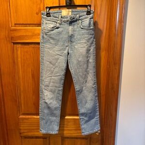 CQY High Rise Straight Leg Jeans. Cropped length. Zip and button closure. Women's size 25. Gently used with no flaws.