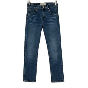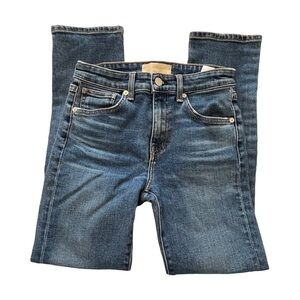 CQY Jeans Japanese Denim Mid Rise Straight Leg Medium Wash Cropped Jeans 24