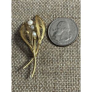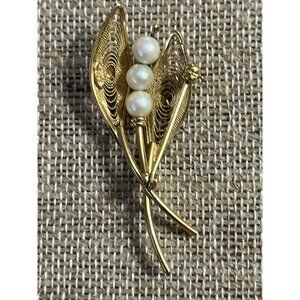 C.R. Co 12K Gold-Filled Floral Brooch With Faux Pearls