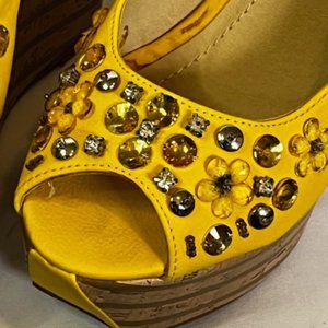 CR Collection Yellow Bling Wedge Sandal. size 8M. Preowned. Excellent Condition. Cute Shoe.