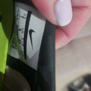 Noticing a marker line on both top NIKE swooshes, though never noticed until this posting. Worked perfectly as indoor shoes for 11-year old boy futsal player. If you want the CR7 name (Cristiano Ronaldo) and a great price, get them here. Price compensating for used and for marker.