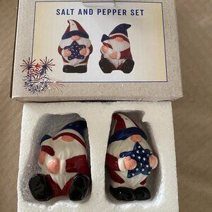 CRACKER BARREL GNOME SALT AND PEPPER SHAKERS RED WHITE BLUE shopping bag incl