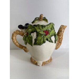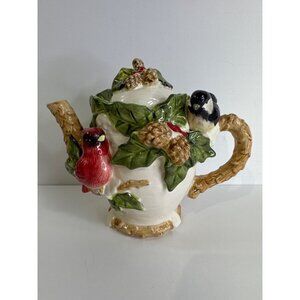 CRACKER BARREL Teapot 3D HOLIDAY GARDEN Winter Birds Red Cardinal Chickadee