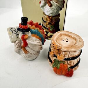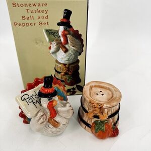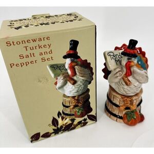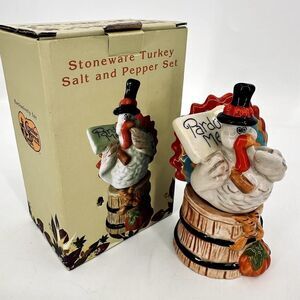 CRACKER BARREL Vintage Turkey Stump Stoneware Salt & Pepper Shaker Thanksgiving