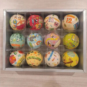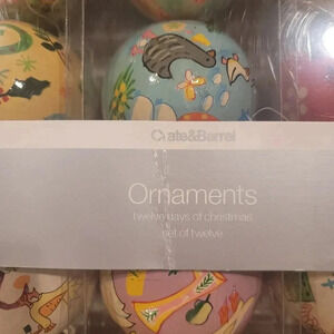 CRATE & BARREL Twelve Days of Christmas Ornament Box Set Paper Mache Folk Art