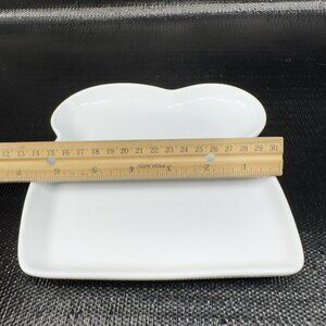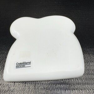 CRATE & BARREL White Bread Toast Shaped Plate Dish Ceramic Stoneware Plates Set4