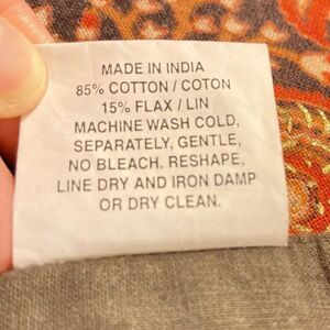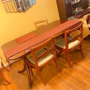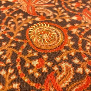 Elevate your table setting with this vintage Crate & Barrel RAJASTHALI table runner, featuring rich fall-inspired hues of gold, red, and brown
