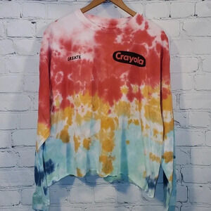CRAYON LONG SLEEVE CROP TOPGRAPHIC PRINTCREW NECK
