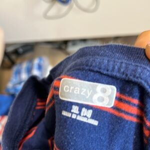 CRAZY 8 Youth Short Sleeved Blue and Red Striped Short Sleeved Tee Shirt. Ex Lg