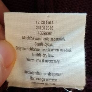 Like new button down sweater with a hood. Color is plum with multi color stripes. 2 small pockets on the front. Sz is m 7-8