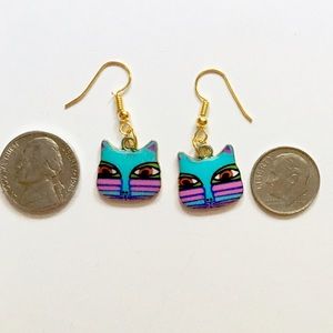 Oh my gosh! I'm in love! These earrings are darling! Blue, pink, purple, green and red crazy cats! Gold backs. In between the size of a nickel and a dime. I also have a separate listing with an orange pair! 🔶😻🔶 NEW! In original packaging! No tags though. Bought for retail/boutique.