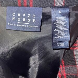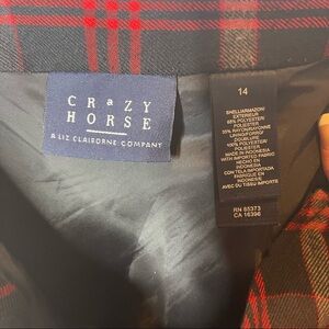 CRAZY HORSE BY LIZ CLAIBORNE Black & Red Plaid Wool Style Skirt w Side Zip 14