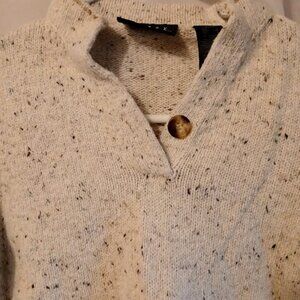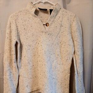 CRAZY HORSE LIZ CLAIBORNE Mock neck Sweater Top PS Ivory speckled Henley button