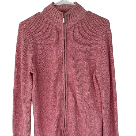 CRAZY HORSE A LIZ CLAIBORNE COMPANY PINK & WHITE ZIP FRONT CARDIGAN SWEATER SIZE MEDIUM IN EXCELLENT CONDITION!