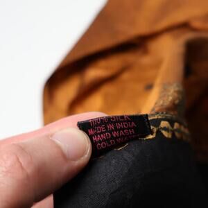 CRC 100% Silk Orange & Black Color Block Scarf Mirror Work Bohemian India Made