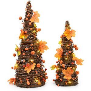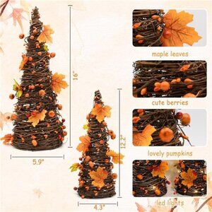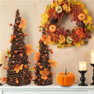 CRCZK 16inch Fall Tree Decoration Indoor, 2PCS Artifical Autumn Rattan Pumpkins