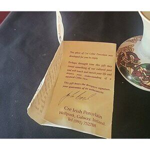 This vintage Irish porcelain bud vase is a beautiful addition to any collection. Handmade in Galway, Ireland, this piece features intricate Celtic designs and is signed by J McCaul. Measuring 4 inches in height, this vase is perfect for displaying flowers or standing alone as a decorative piece. The provenance of this item is not available, but it is clear that it has been crafted with care and attention to detail.