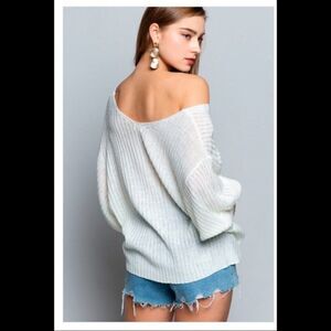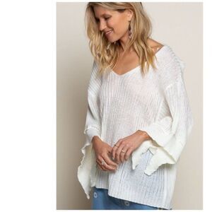 Description: Never felt cozier than our Float On Me Lightweight Sweater top featuring relaxed fit with low V neckline, short sleeve with knitted band with open side on a string to be tied or let loose.