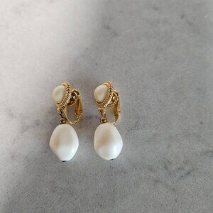 SET OF CREAM GRADUATED BEAD 31" LONG NECKLACE WITH MATCHING CROWN TRIFARI CREAM BEAD DROP CLIP-ON EARRINGS FOR SALE FOR $95 - Set of Cream Graduated Bead 31" Long Necklace and Matching Crown Trifari Cream Bead Drop Clip-On Earrings is a beautiful set for any occasion.
