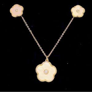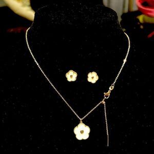 CREAM MOTHER OF PEARL CLOVER SET NECKLACE AND EARRINGS 14K GOLD PLATED