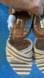 CREAM TAN STRIPED FABRIC SANDALS — CORK PLATFORM WEDGE — NEW — SIZE 8