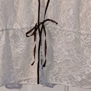 CREAM lace jacket w/ brown accent tie NWT lace bridal shower feminine