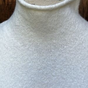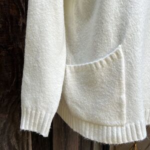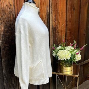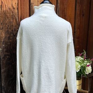 A slightly oversized cozy cream sweater with a cowl neck, two large side pockets and ribbed hemline and cuffs. Pre worn but in excellent condition.