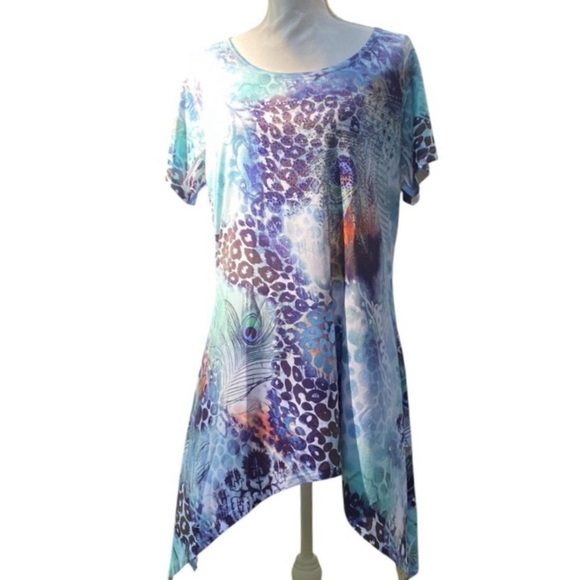 CREATION Geometric “Shark Bite” Hemline in Blue Green Purple Size Medium