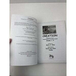 The product is a trade paperback book titled "Creation: Thirteen 6-In-1 Comprehensive Curriculum Lessons" by authors Helen and David Haidle. Published by New Leaf Publishing Group in 2009, the book offers a comprehensive curriculum from grades 1-4 in a compact format. It includes illustrations and spans 139 pages, making it a valuable resource for educators and students alike. With a convenient size of 8.3 x 10.7 inches and weighing 14.1 ounces, this book is a must-have for those looking to enhance their educational materials.