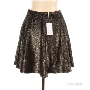 CREATURES OF COMFORT Bronze Metallic Mini Circle Skirt Skater Flared Large New