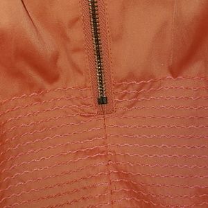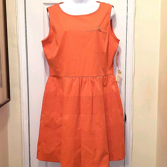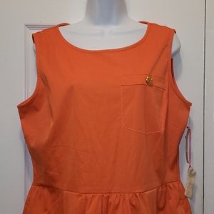 CREMIEUX orange dress. 55 % cotton40% Nylon 5% Spandex. IT HAS SIDE POCKETS! Gold zipper and 1 gold button on faux chest pocket.