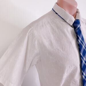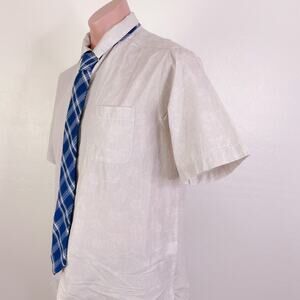 CREMIEUX Khaki Tan Floral 100% Cotton Short Sleeve Button Down Shirt size S NWT