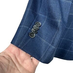 CREMIEUX Loro Piano 44L Blue Wool Windowpane 2 Button Sports Coat Jacket