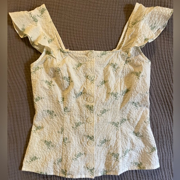 NWT. Daniel Cremieux floral, button down, ruffle tank. Cute summery tank with ruffled straps and shirted back for extra stretch. Never worn, excellent condition. Open to offers or trades!