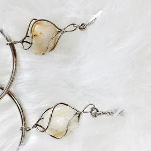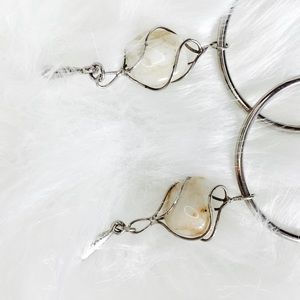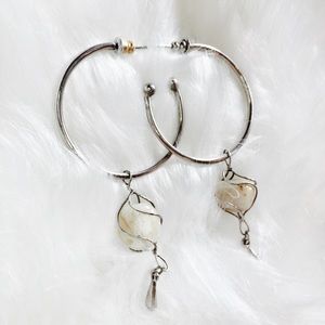 BOUTIQUE • \\The Lion's Den// Solid + stamped •925 Sterling silver hoop earrings ::: Approximately 2mm thickness ::: Removable stone charms on each Earrings ::: Open hoops ::: Perfect condition ::: Approximately the circumference of a golf ball ::: Approximately 13grams for pair + approximately 6grams in weight for each earring•