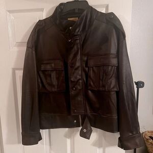 CRESCENT Jada Vegan Leather Utility Jacket BROWN medium nwt oversized