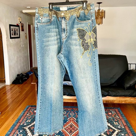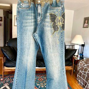 * These beautiful Crest Jeans have a lovely lace detail at the waist & a fantastic beaded & embroidered butterfly on the hip/thigh.