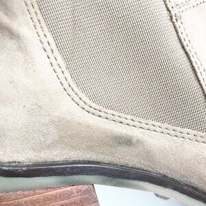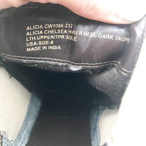 Crevo Alicia Chelsea Hiker Heel Dark Taupe boots. Block heel, leather upper, size womens 8, some discoloration/scuffs on outer-see photos. Smoke and pet free home.