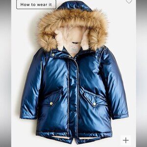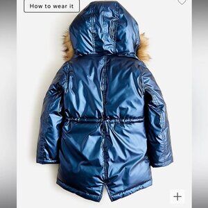 CREWCUTS Girls S Blue High Sheen Metallic Fishtail Parka with PrimaLoft