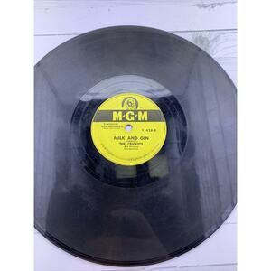 This 7" single by the Crickets features the songs "You're Mine" and "Milk and Gin," both of which showcase the group's signature vocal harmonies. The record is on the MGM label and plays at 45 RPM.