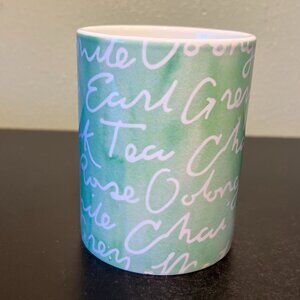 CRICUT Jade Green Ceramic Mug w/ White Cursive Tea Words ~ Oolong ~ Chai ~ Matcha ~ Earl Grey ~ Chamomile ~ Black