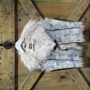 CRIPPLE CREEK MARBLE BLUE VEST FAUX FUR REAL LEATHER BOHO CHIC CITYGIRL WESTERN