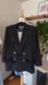 Chic vintage double breasted black blazer jacket with rhinestone embellished buttons and rhinestone trim lapels. Just the right touch for an evening event or dressy occasion.