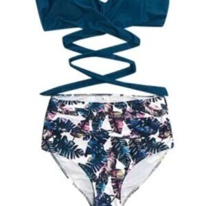 CRISS CROSS TROPICAL TWO-PIECE SEXY HIGH WAIST SWIMSUIT