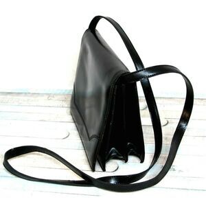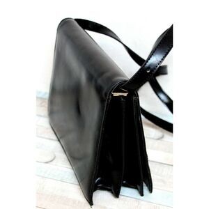 CRISTIAN Italy BLACK SMOOTH GENUINE LEATHER FLAP SHOULDER BAG CROSSBODY CLUTCH