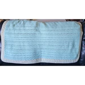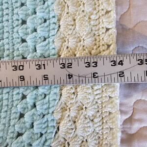 CROCHET Afghan Blanket Teal Blue Yellow Baby Small 44" x 32" Scalloped