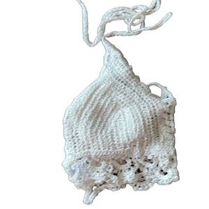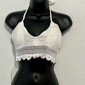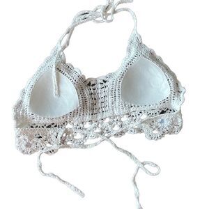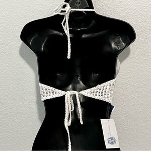 NWT Crochet Boho American Flirt CROCHET WHITE STRING LINED TRIANGLE BIKINI Crop TOP