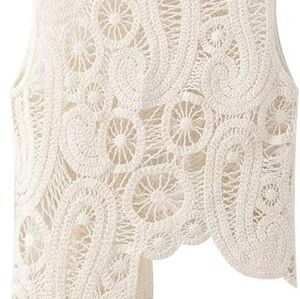 Elegant cream crochet lace top. Features intricate patterns and a stylish design.